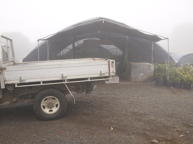 Thankfully, we were visiting the forest with the of the Native Plant Society of Maui, a working volunteer group that has been coming to Hakalau semi-annually since the park’s dedication. They consisted of a dozen local ladies with a couple husbands in tow, with all the enthusiasm of folks that take scientific nomenclature, zoning regulations and NPR donor drives seriously. This is their Vegas. When AJ and I saw them unpack their bags from Hilo’s KTA Superstore, we knew we might be cold, but we wouldn’t be hungry. For the weekend we had all the essentials of roughing it: homemade vegetarian quiche Lorraine, ginger cookies, pie, and coffee that didn’t come out of a plastic bucket.