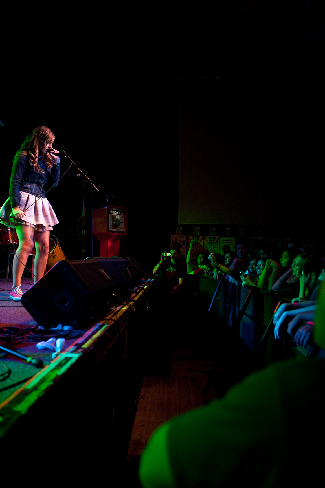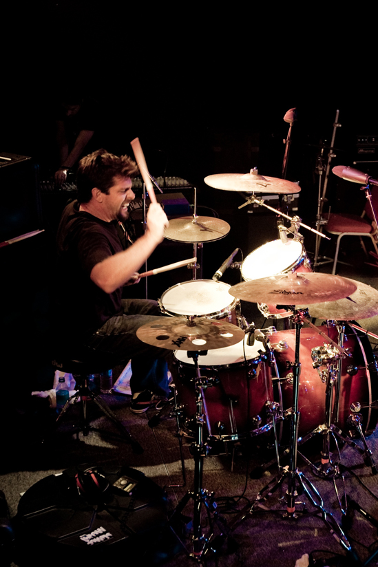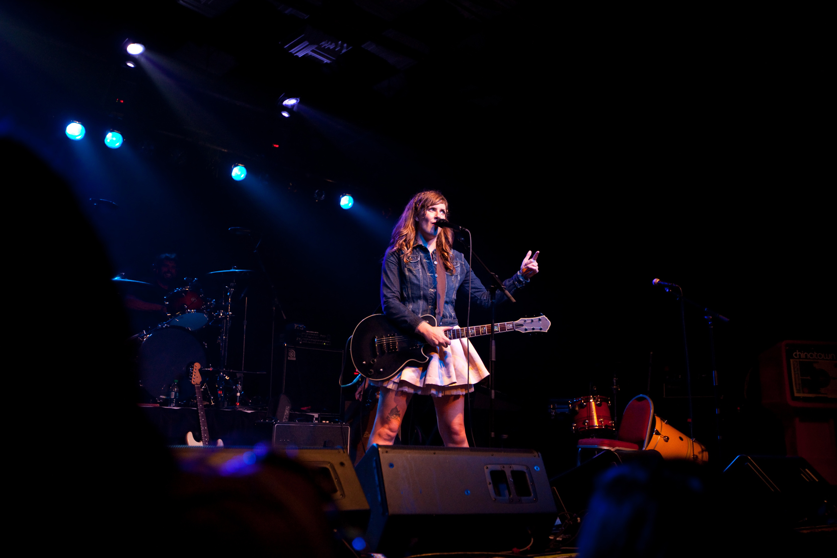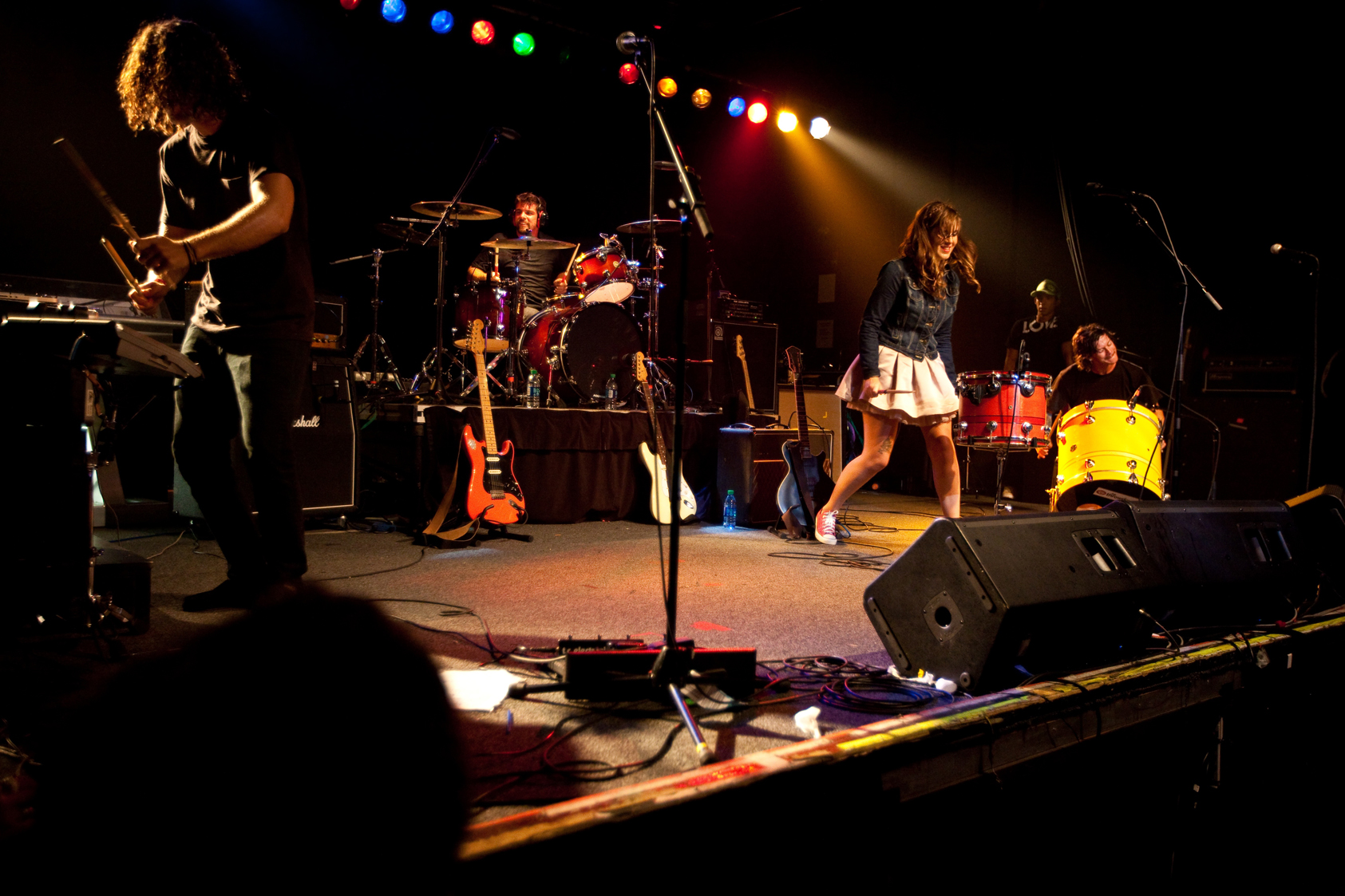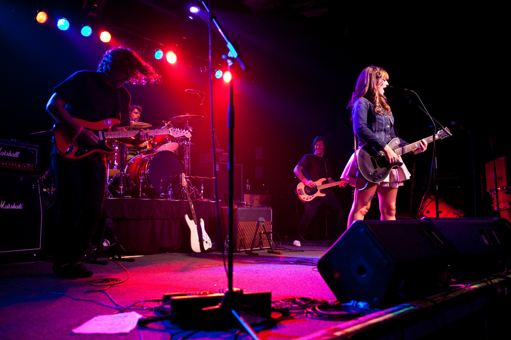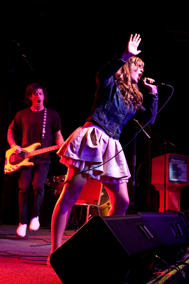The term that comes to my mind, though, is kinetic. When The Throwdowns take the stage, they open with a quick-tempo, energetic song. Ian’s rapid beats are accompanied by Erin’s sultry, yet punk-rock voice. Kimo and Ola dance all over the floor. Their energy is infectious and the crowd is immediately hooked.