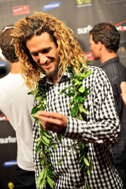 Not even Mark Healy’s salmon colored get up could detract from the somber, yet celebratory mood at the Surfer Poll awards, which was brought to the Oahu’s North Shore after being held in Anaheim for years before. It was clear that the surfing world was still in a collective shock over the loss of such a monster athelete. Nearly every winner dedicated his or her award to Andy and his family, and a tribute video put together by Matt Beauchesne was downright moving. (SEE THE VIDEO HERE, COURTESY SURFER MAGAZINE.) It was heavy. Palpable. Few other highlights include, Kelly Slater voted as the no. 1 surfer of the year, after securing his tenth world title; and Stephanie Gilmore, surfing’s new sweetheart, voted no.1 female surfer of the year, after her four back-to-back ASP wins.