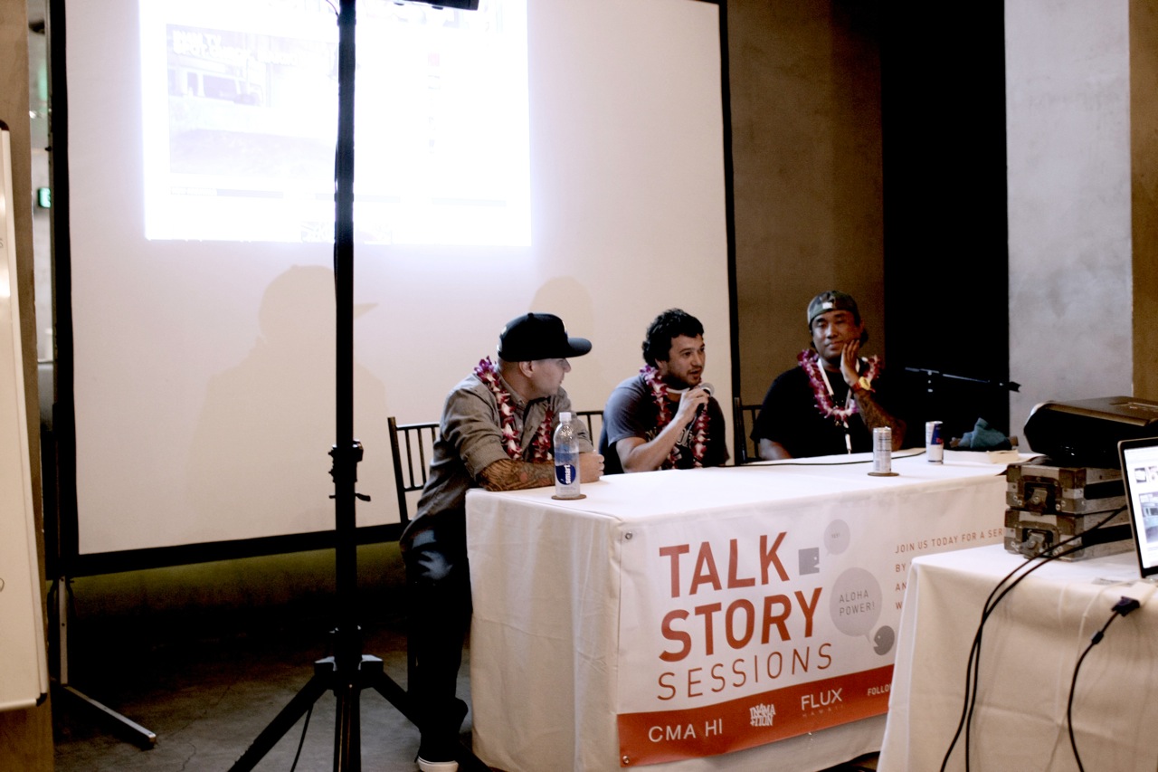 A bevy of creatives, artists, musicians and designers put one hand up for education and inspiration at the inaugural Talk Story Sessions, a daylong series of workshops put on in part by CMA Hawaii, In4mation and FLUX. Presentations by speakers who aren’t afraid to think outside of the box set creative passions ablaze, encouraging Talk Story goers to think with vision and incite change within themselves, and effectively, their communities.