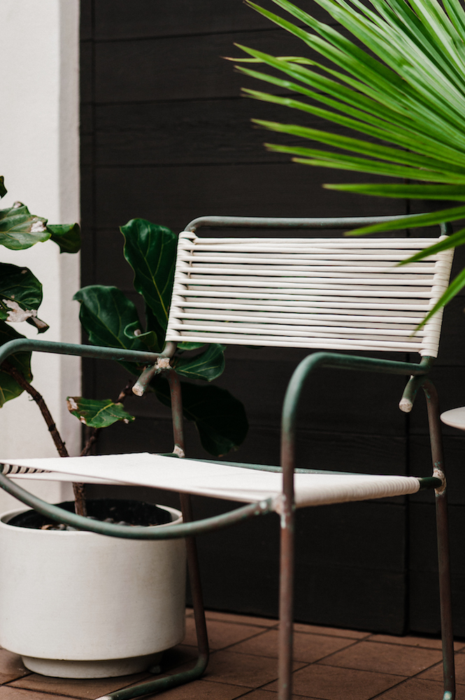 “The combination of bronze and flag line, or cording, are well suited to our tropical climate,” Davey says. “Because their origination is rooted in Hawai‘i, so is much of their history.” The story goes that after World War II, Walter Lamb salvaged bronze and copper tubing from naval ships at Pearl Harbor to create his first pieces. (While this chair is attributed to Walter Lamb, there is some disagreement as to whether he, or Kipp Stewart, who worked for Lamb while he was in college, originally designed this chair.) “This particular piece came from a now-defunct hotel located on the Gold Coast, on the foothills of Diamond Head, in Waikīkī,” Davey says. “This furniture was everywhere in the ’50s and ’60s, but is becoming scarcer, and consequently, higher priced.”