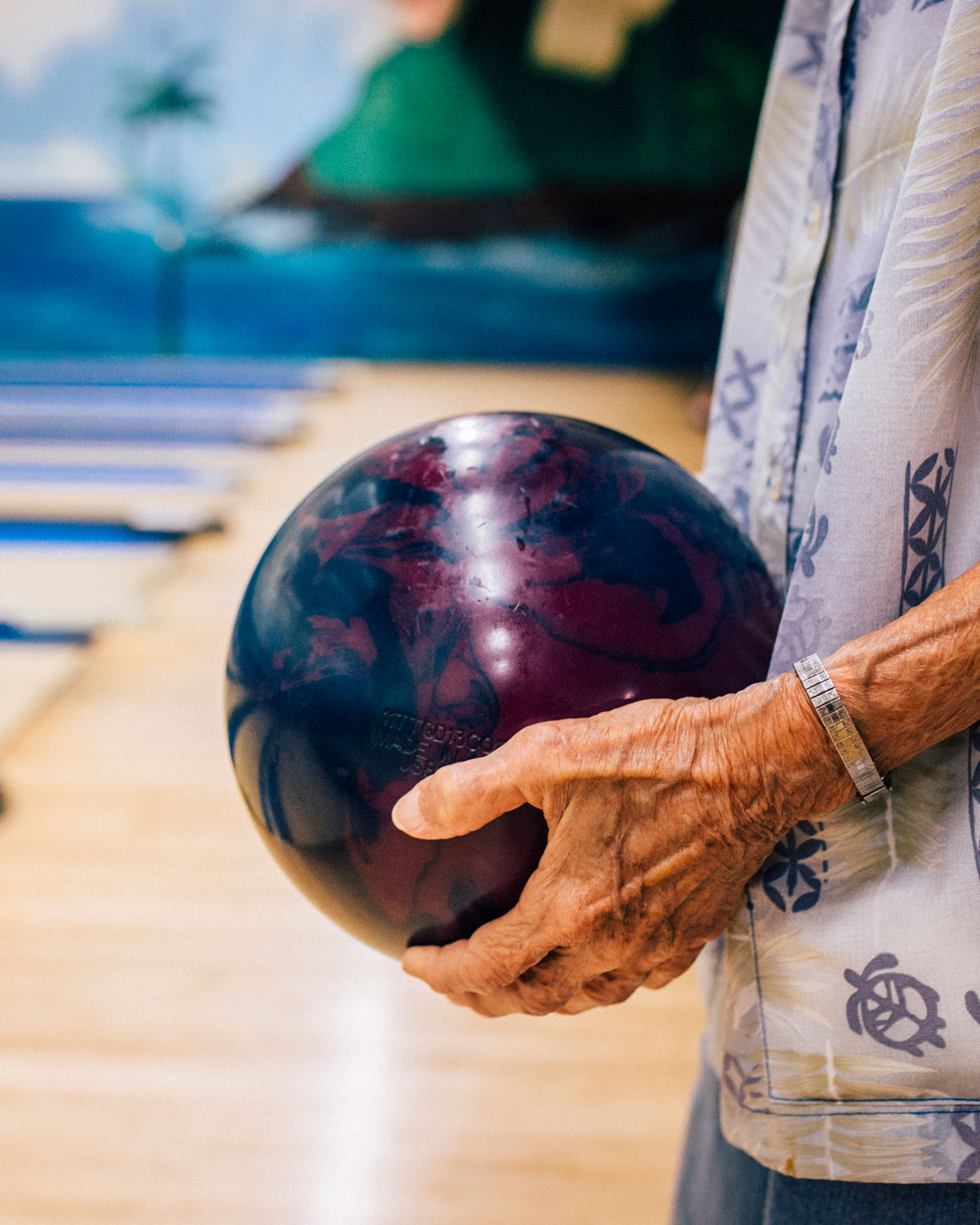 But the solutions for the seniors are not as straightforward as managing the roots of the Mānoa Marketplace trees. “Bowling is a dying sport,” says Ruth Chatterton, secretary for the Koolau Seniors. At the Monday night bowl, the league, in which members compete against each other in teams of three, is two members short. One person had to drop out for medical reasons, another had passed away. She remembers when there were 36 bowling alleys on Oʻahu, including one that was literally underground, below Fort Street Mall in downtown Honolulu. Now there are only four: Aiea Bowl, Leeward Bowl, Barbers Point Bowling, and Pali Lanes. “The waitlist used to be so long for lanes, now I’m begging [people to join],” she says.